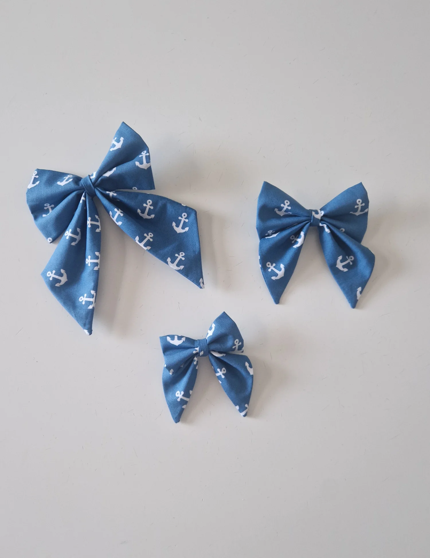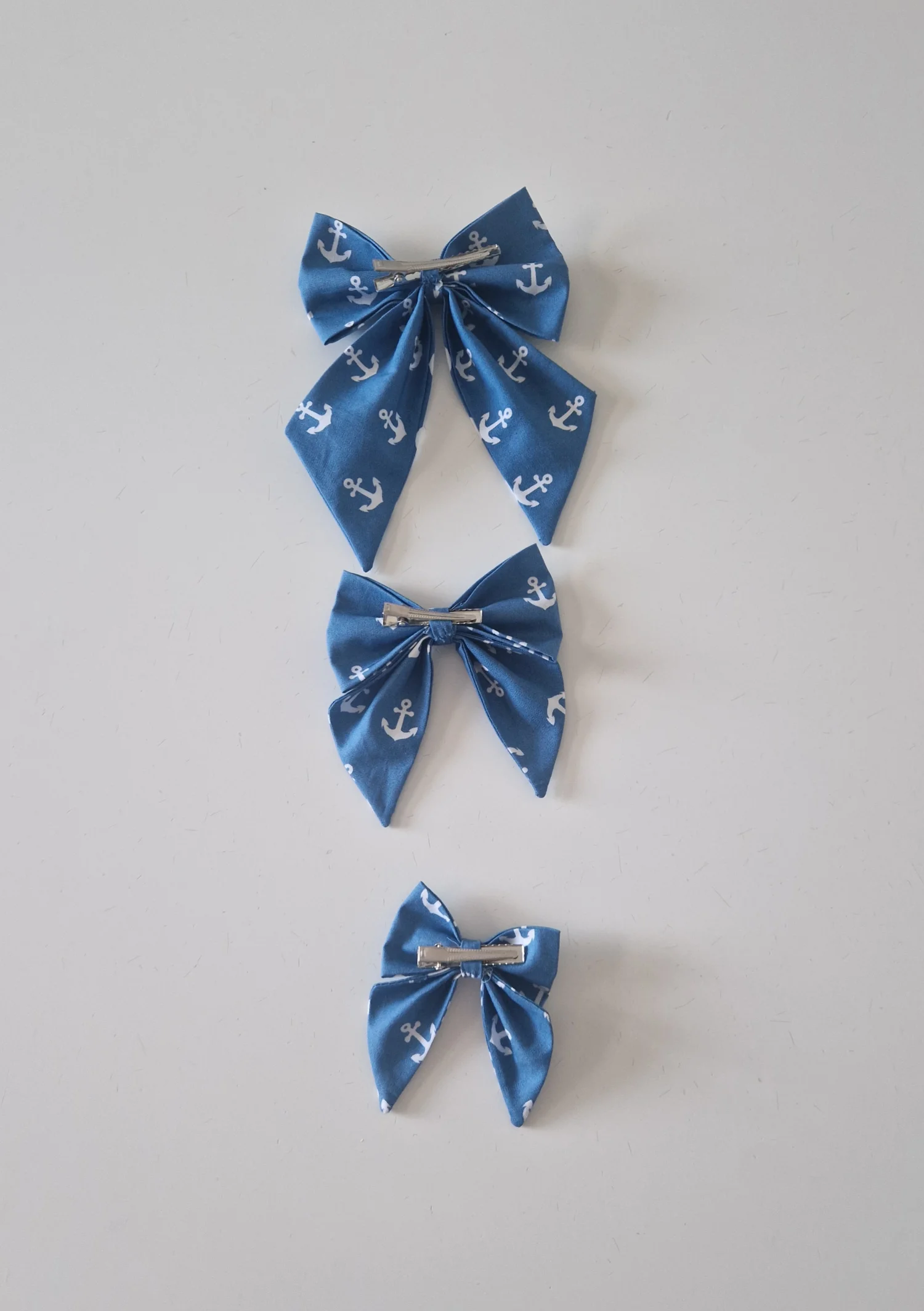 Niebiesko biała kokardka do włosów w kotwice, w trzech rozmiarach :