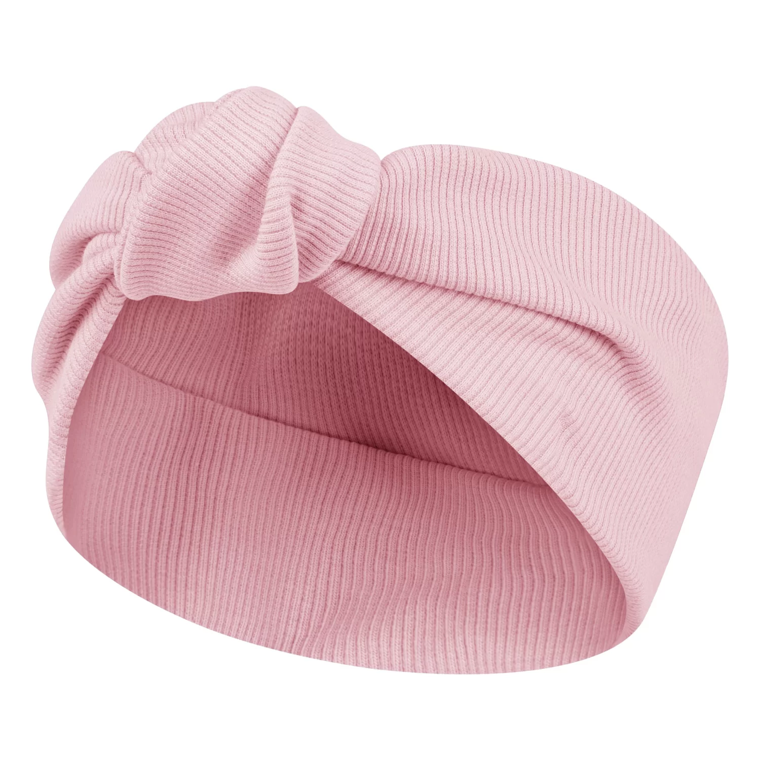 Opaska z dzianiny prążek z duża kokardą, która można samemu zawiązać.