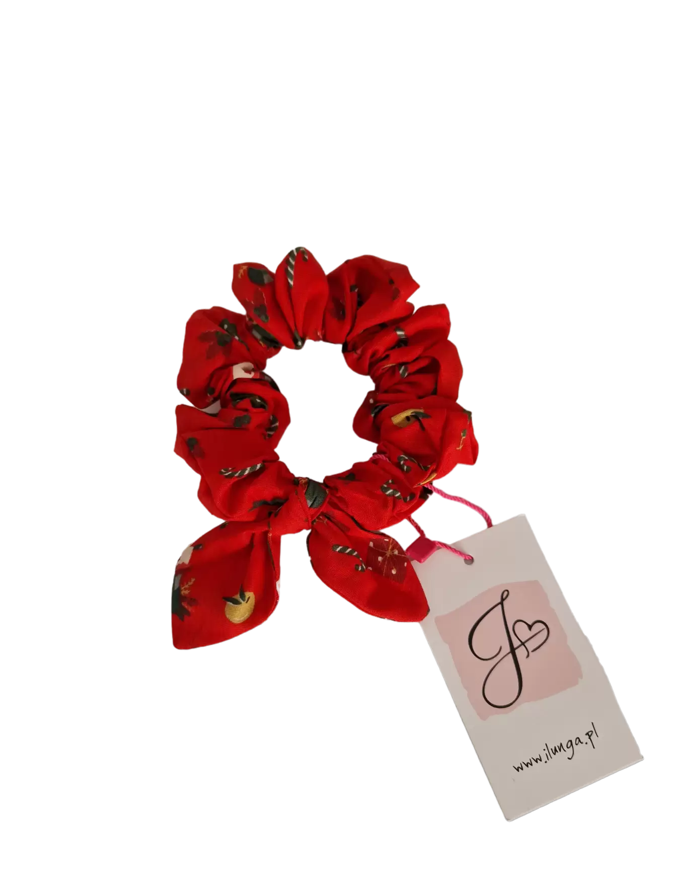 Piękna świąteczna sukienka Honeysuckle w kolorze czerwonym. Sukienka ma długi rękaw, wykończony gumką. Z przodu i tyłu ozdobna falbana. Dół sukienki prosty, z tyłu zapinana na guziczki. Sukienka uszyta z tkaniny bawełnianej 100% w świąteczny wzór