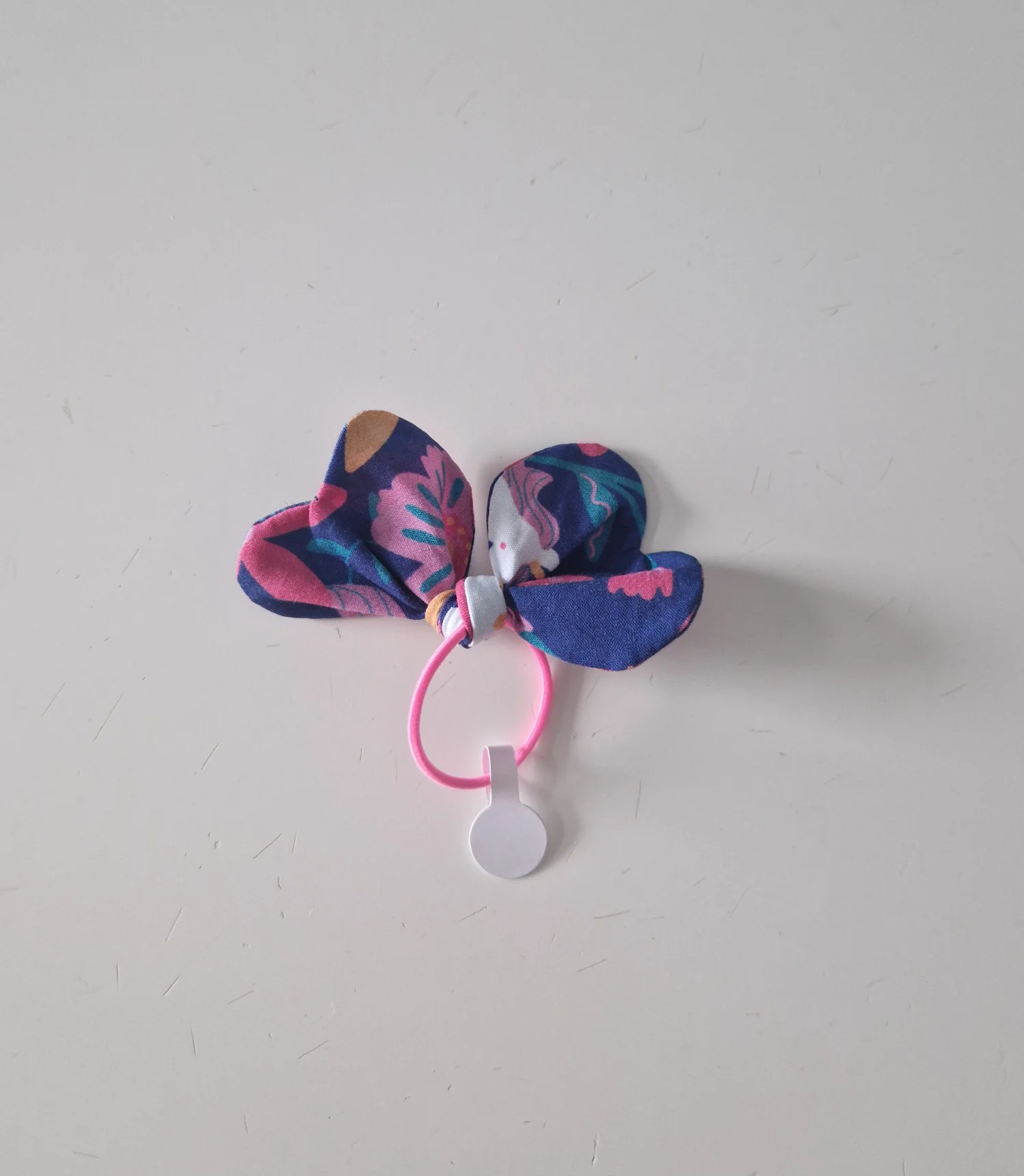 Gumeczka do włosów w kształcie serduszek, uszyta z tkaniny w kolorze niebieskim w jednorozce