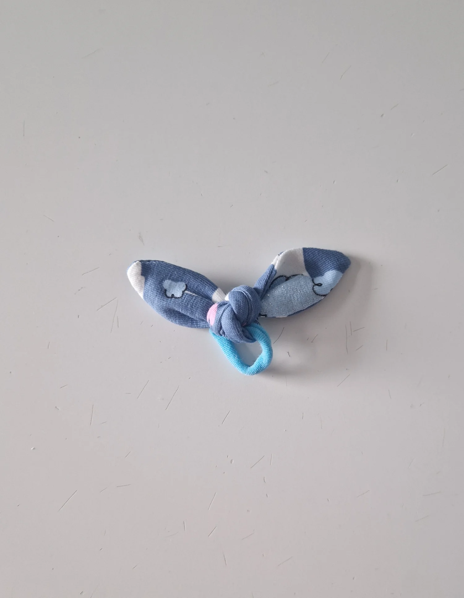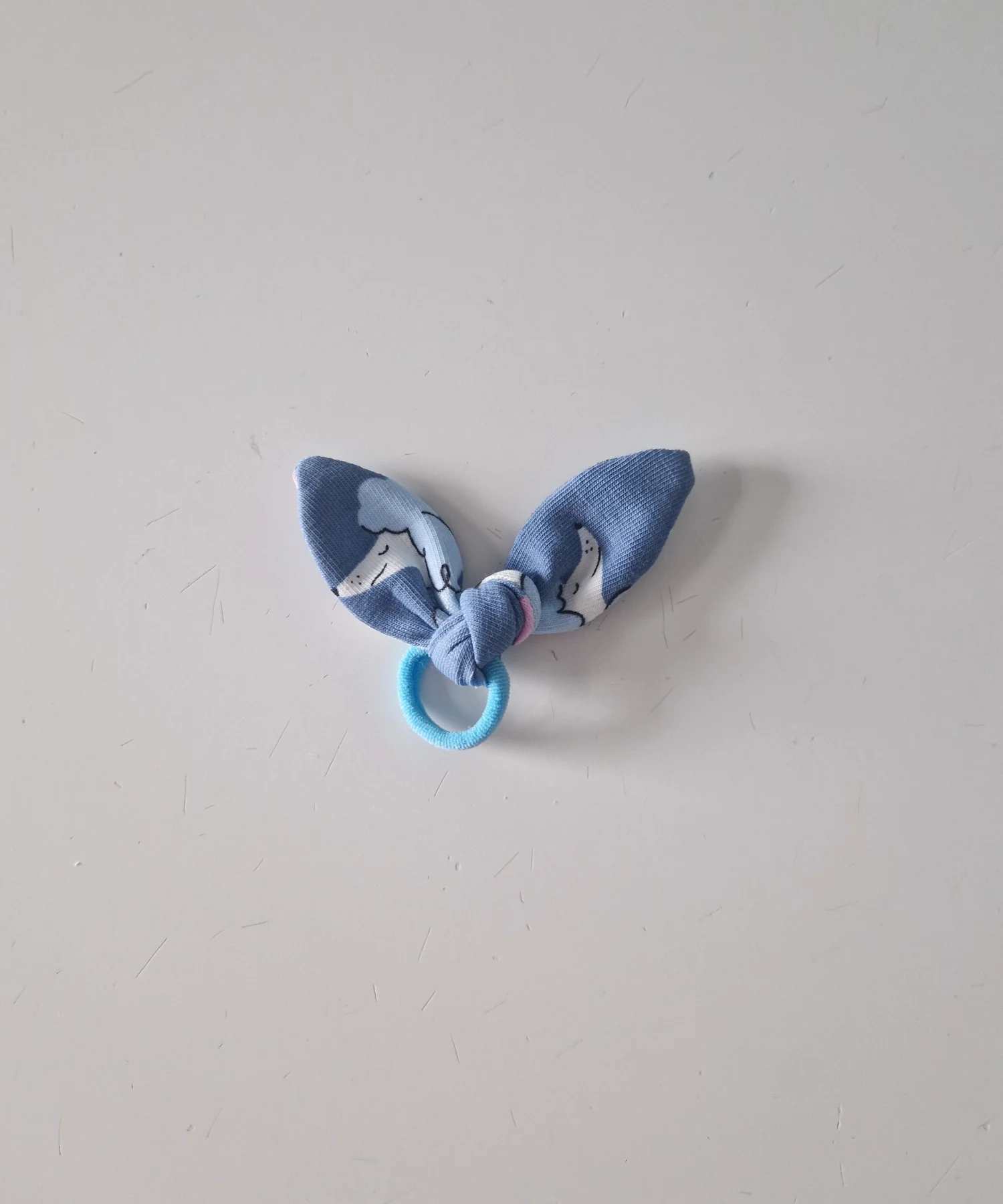 Mała gumka do włosów z kokardka w kolorze niebieskim w pudelki