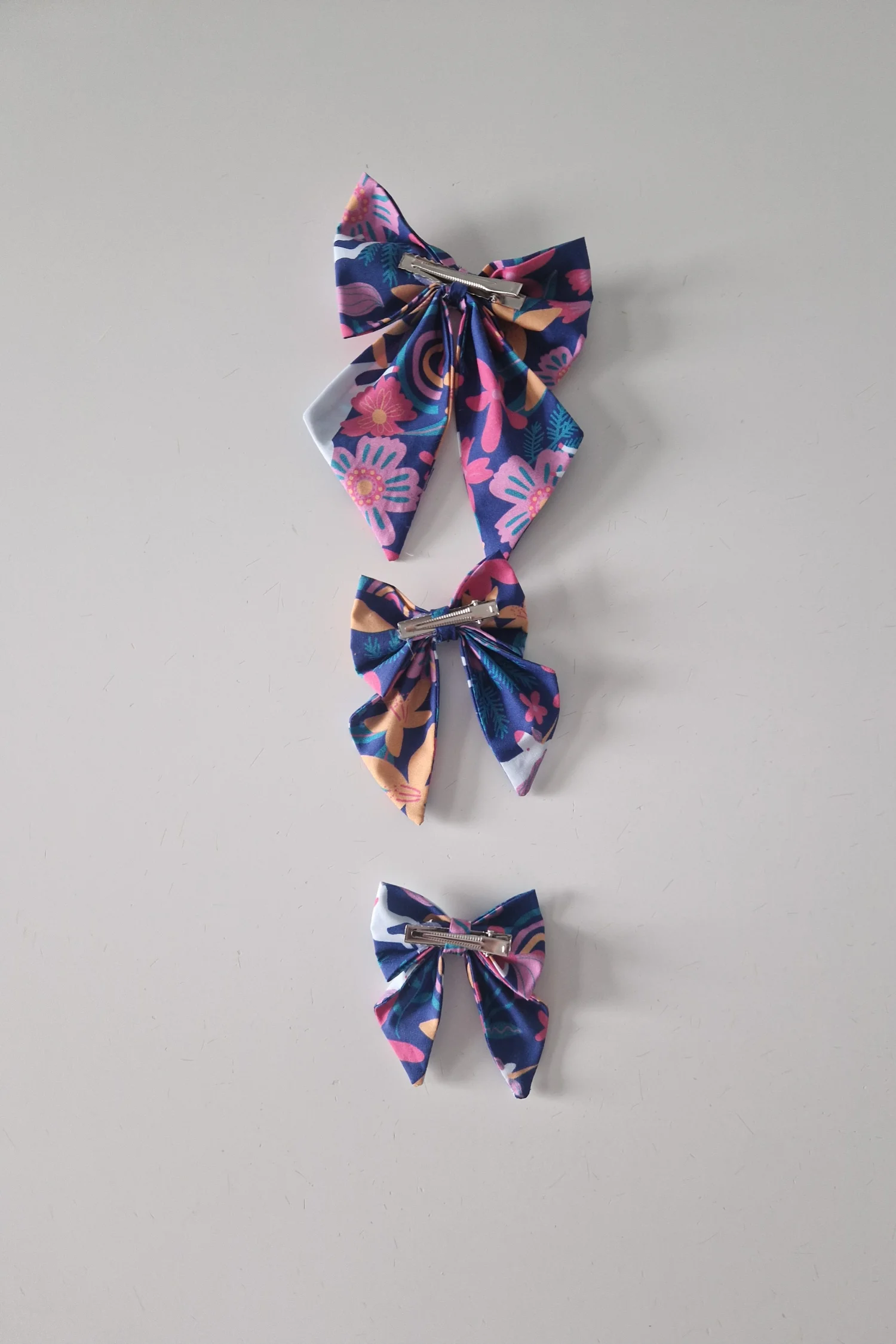 Niebieska kokardka do włosów w jednorozce w trzech rozmiarach :