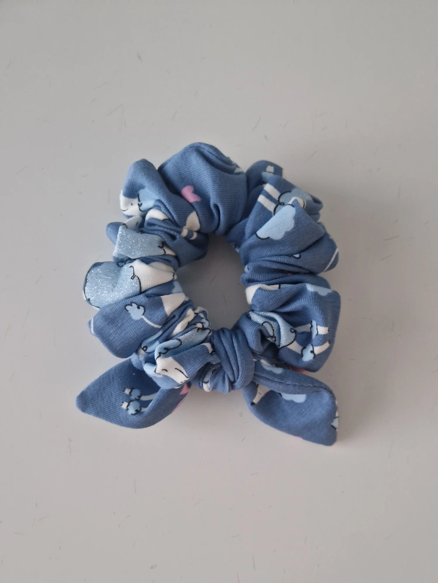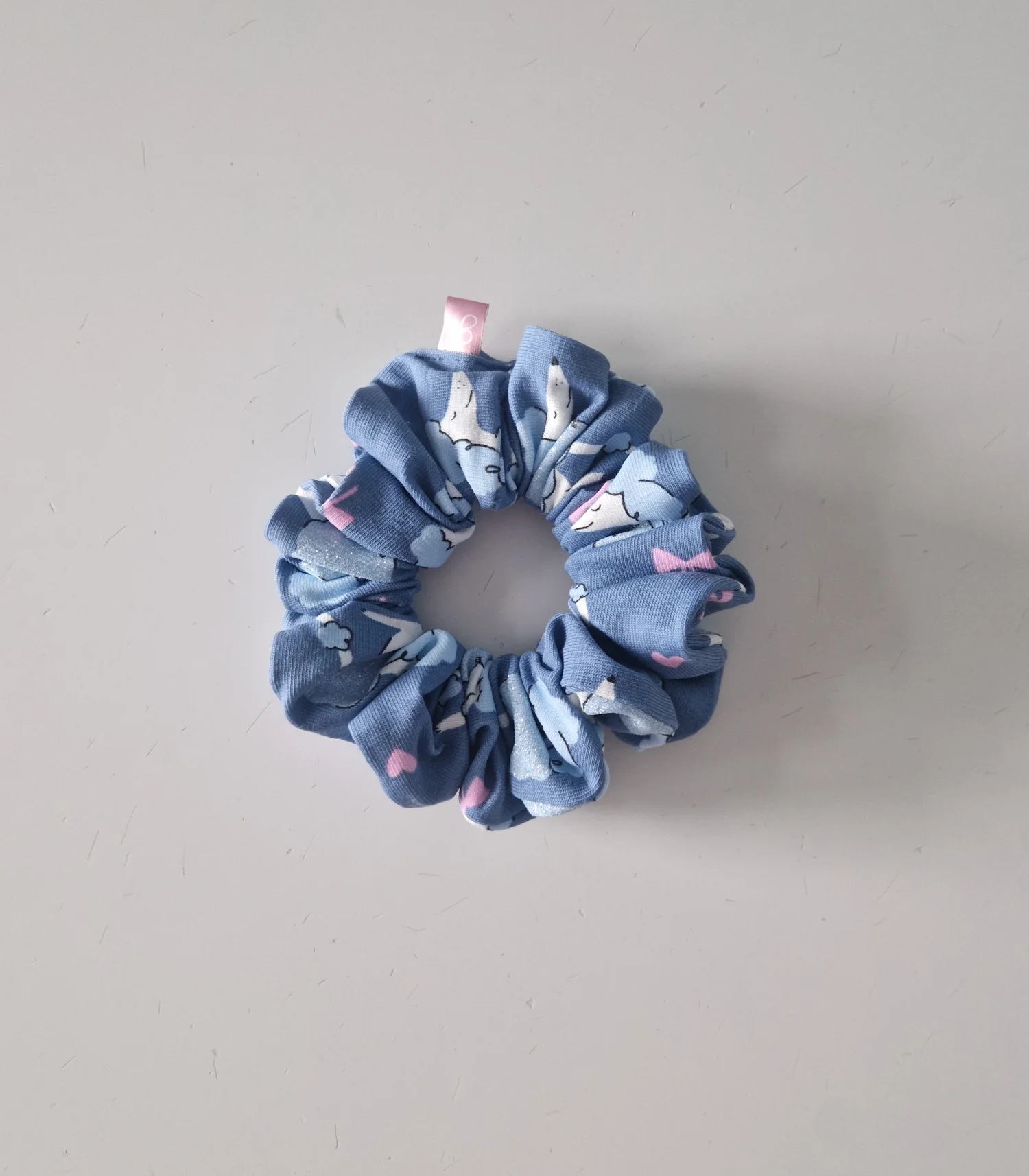 Duża gumka do włosów scrunchie w kolorze niebieskim w pudelki