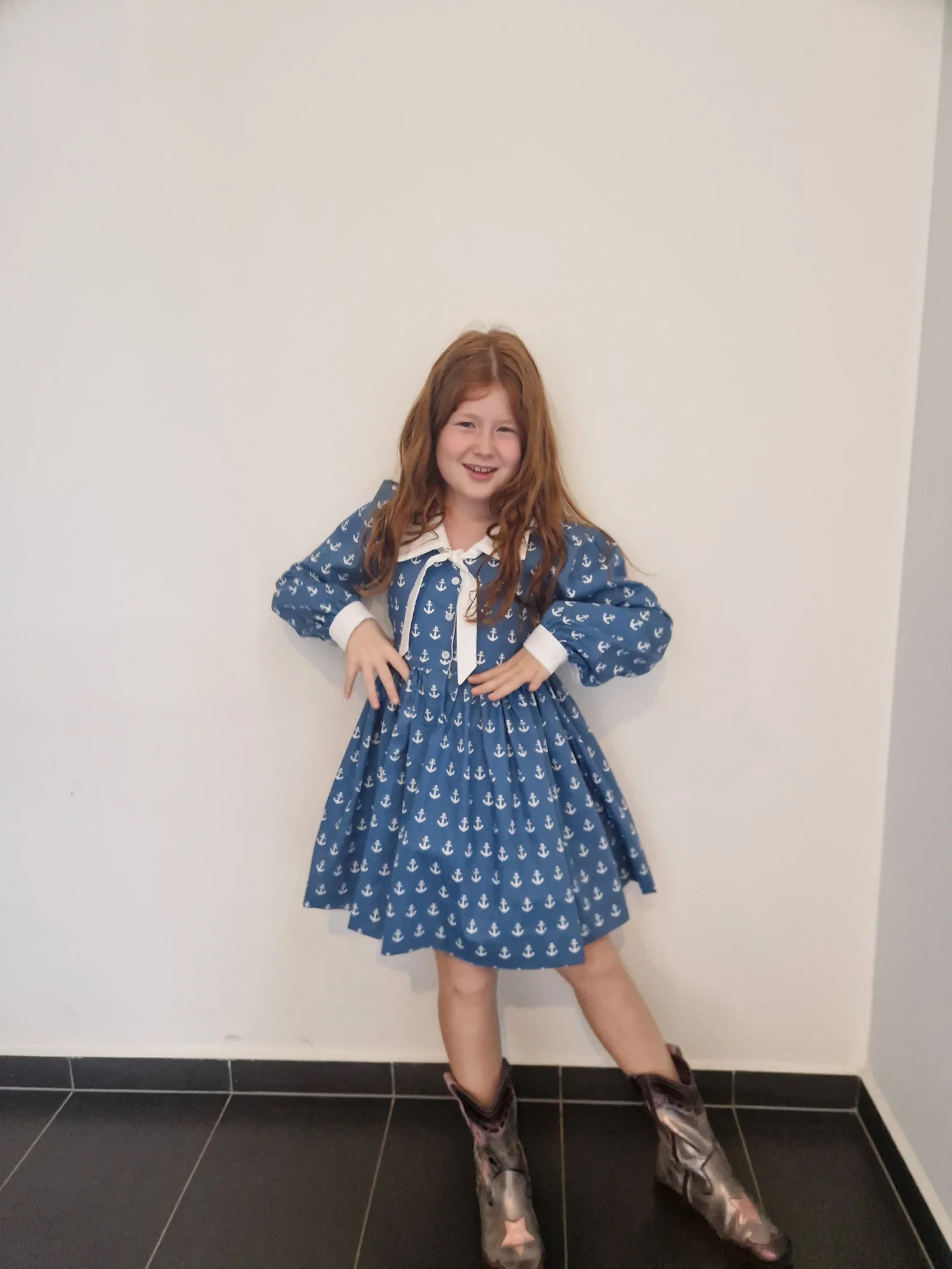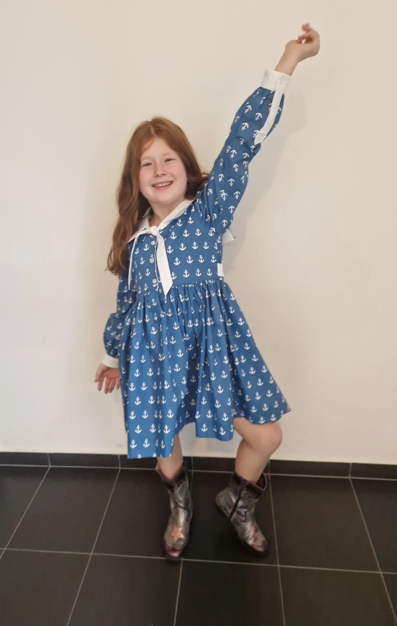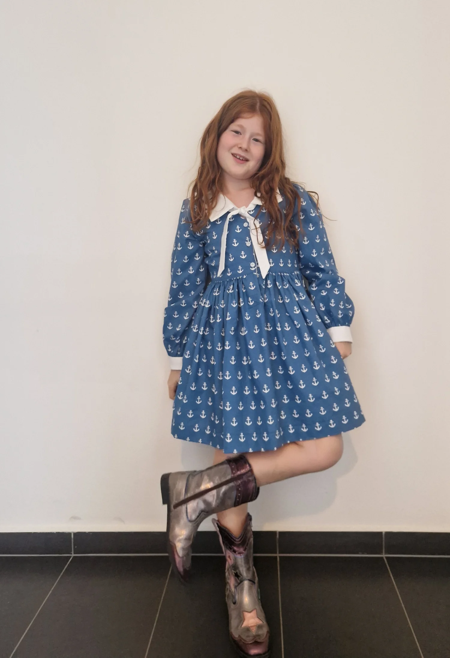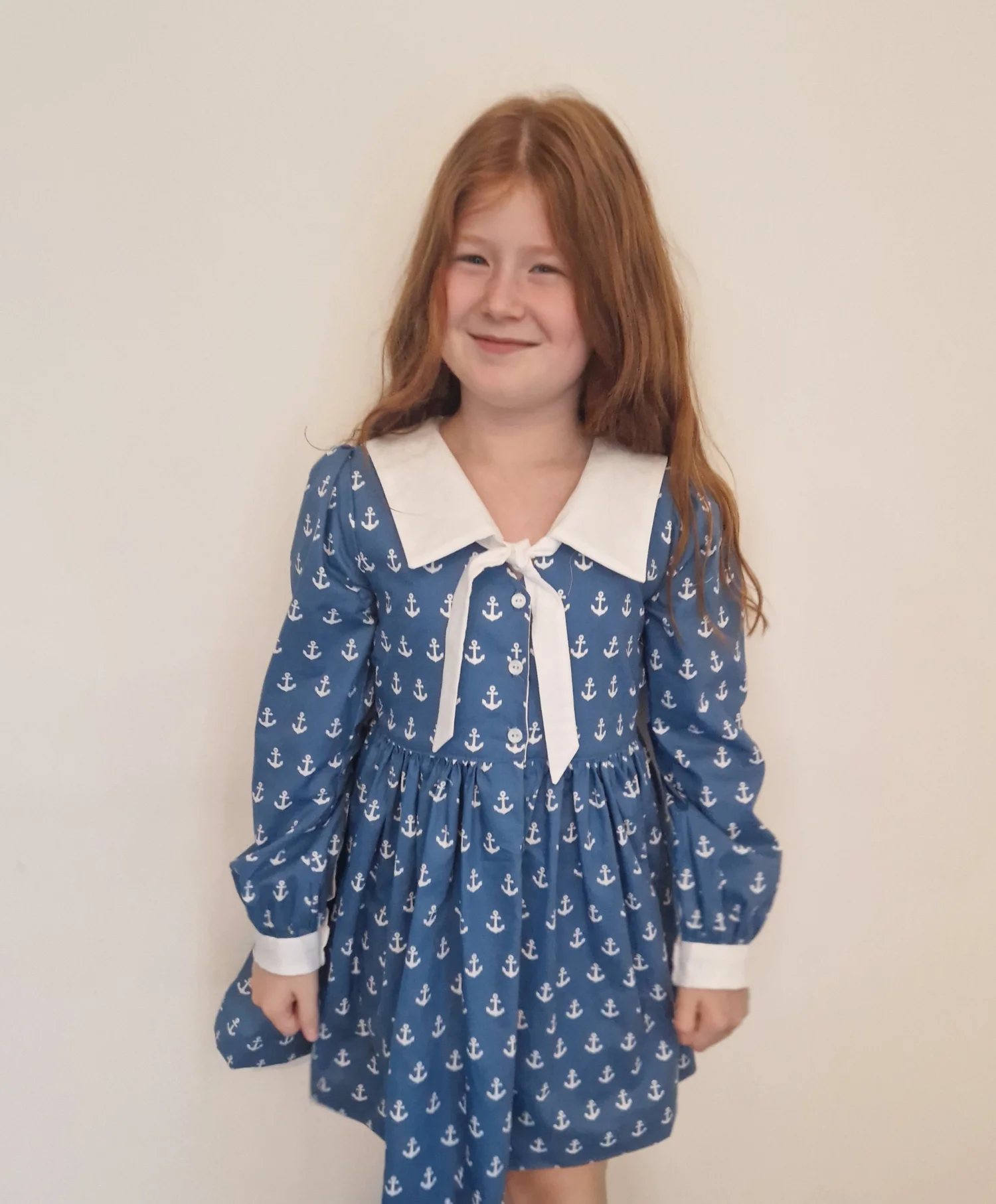 Przepiękna sukienka Katherine w marynarskim stylu. Sukienka uszyta jest z popeliny bawełnianej 100% bawełna w kolorze niebieskim w białe kotwice.
